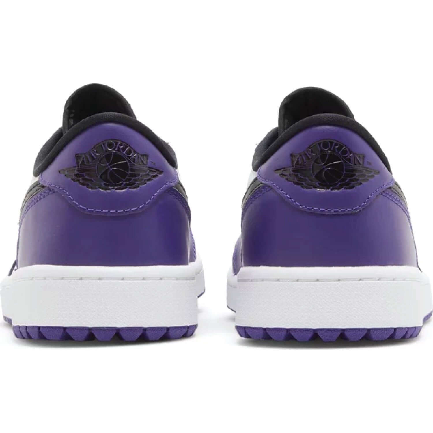 The Air Jordan 1 Low Golf 'Court Purple' combines classic AJ1 style with performance-ready features designed for the course. Showcasing a striking Court Purple and white leather upper, this golf edition blends bold aesthetics with functional design. Enhanced with a spikeless rubber outsole for versatile traction on and off the green, it delivers stability and comfort throughout your round.