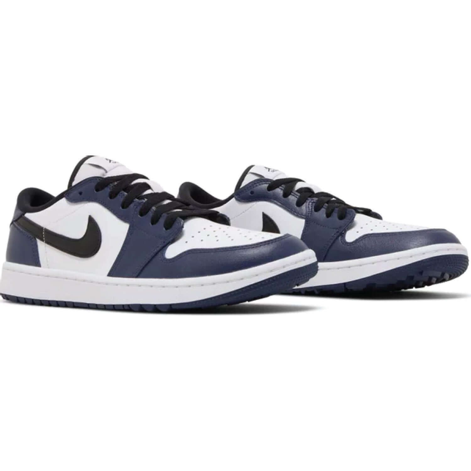 The Air Jordan 1 Low Golf 'Midnight Navy' blends iconic style with golf-specific performance features. This edition features a sleek Midnight Navy and white leather upper that offers both sophistication and durability on the course. Equipped with a spikeless rubber outsole, it ensures excellent traction and stability across various terrains.