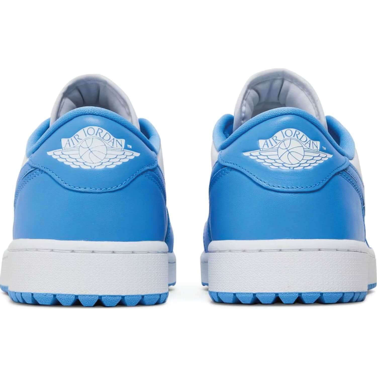 The Air Jordan 1 Low Golf 'UNC' features a crisp white and University Blue colorway, inspired by Michael Jordan's alma mater, the University of North Carolina. Designed specifically for the golf course, this sneaker combines classic Jordan 1 style with a spikeless, golf-ready sole for traction and comfort.