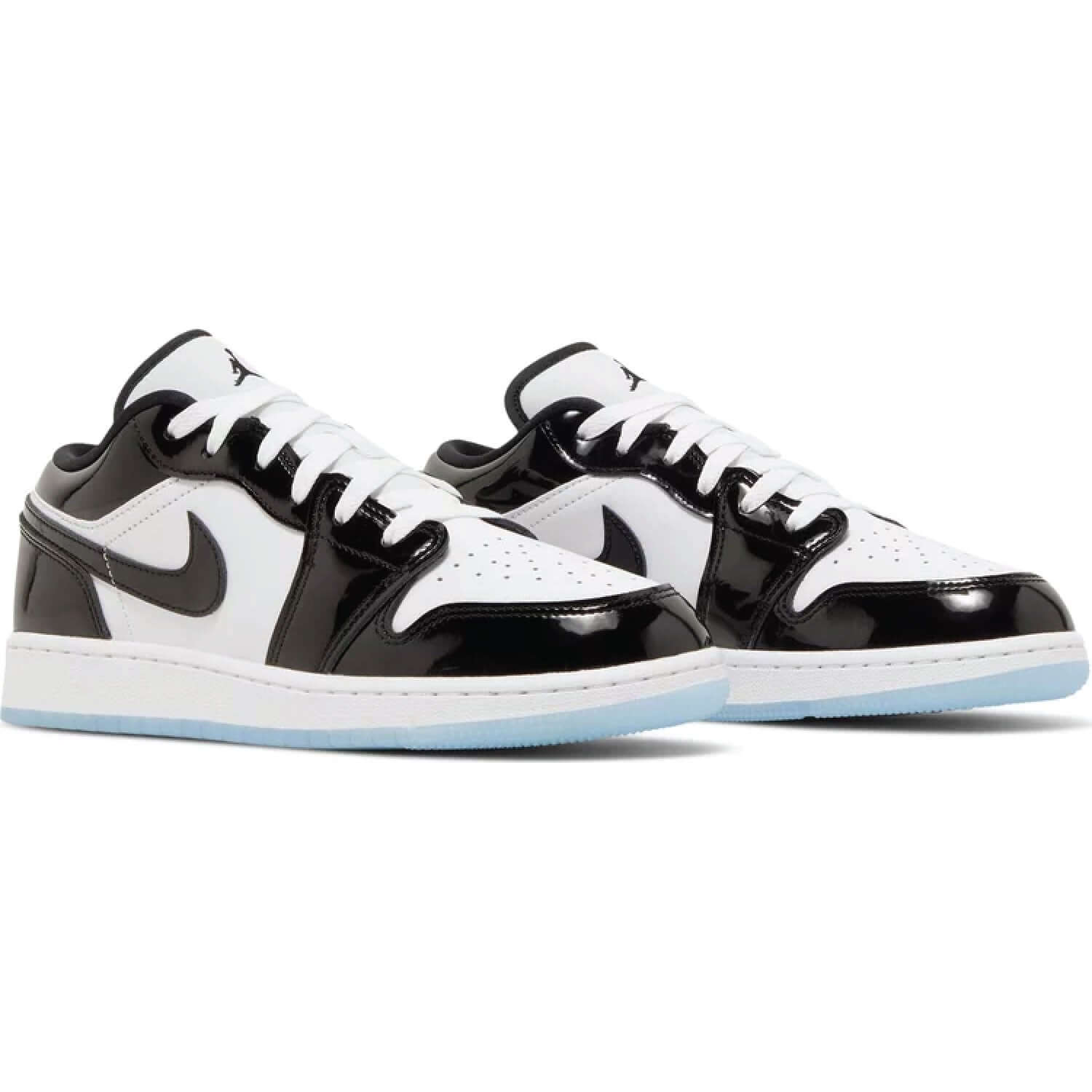 The Air Jordan 1 Low SE GS 'Concord' offers a sleek and modern take on the iconic silhouette, tailored for younger sneaker enthusiasts. Featuring a crisp white leather base complemented by striking Concord purple overlays and subtle black accents, this design delivers vibrant contrast and timeless style. Built with durable and signature Jordan branding, including the Wings logo and Jumpman emblem, it ensures all-day comfort and authentic heritage.