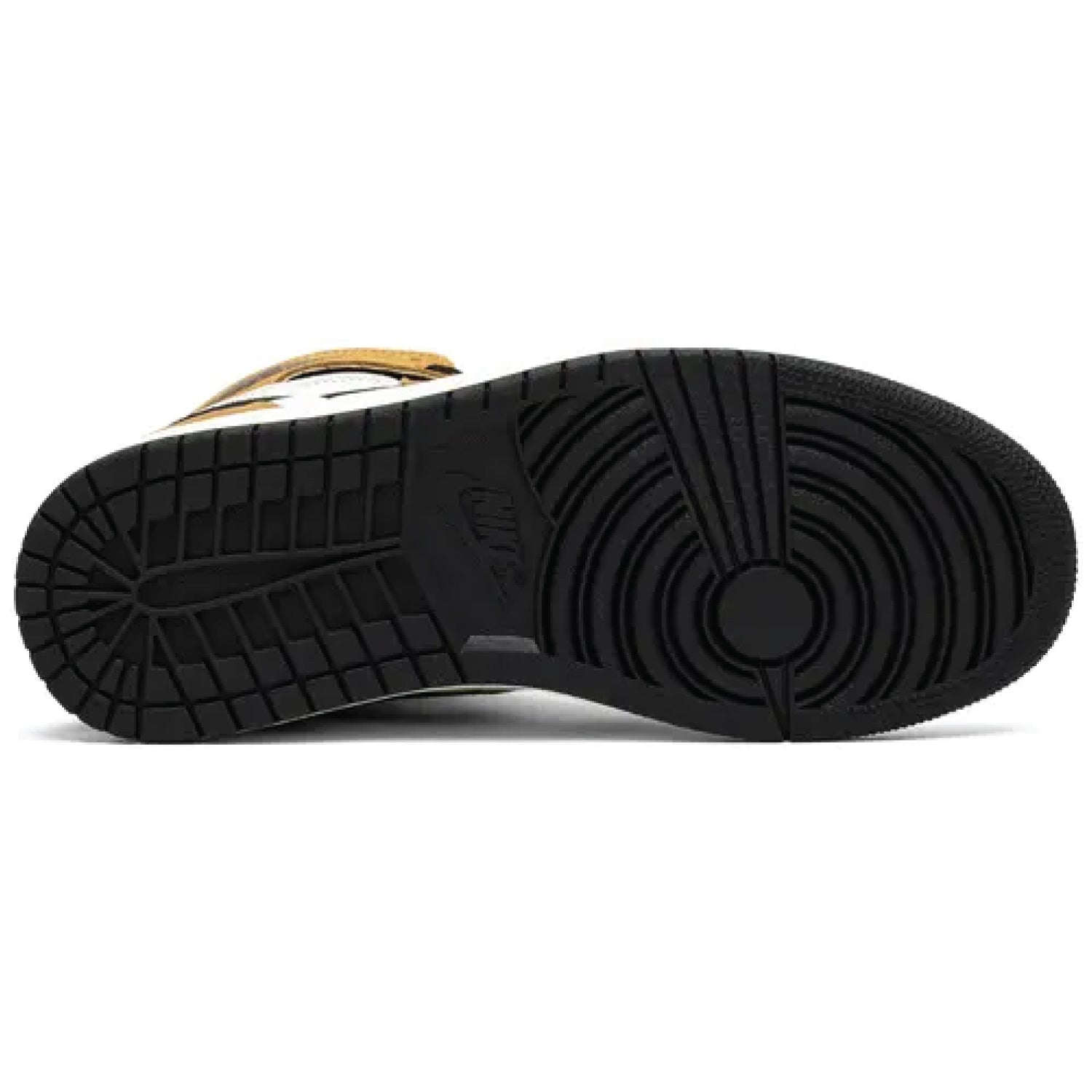 Inspired by the moment Michael Jordan earned the 1985 NBA Rookie of the Year award, the Air Jordan 1 Retro High OG 'Rookie of the Year' blends heritage styling with a meaningful backstory. This standout edition features a premium leather and nubuck upper in a golden harvest and sail colorway, nodding to the outfit MJ wore during his acceptance speech. on the inside of the ankle flaps are printed stats and a memorable quote from Jordan, making this release both a collector’s piece and a style statement.