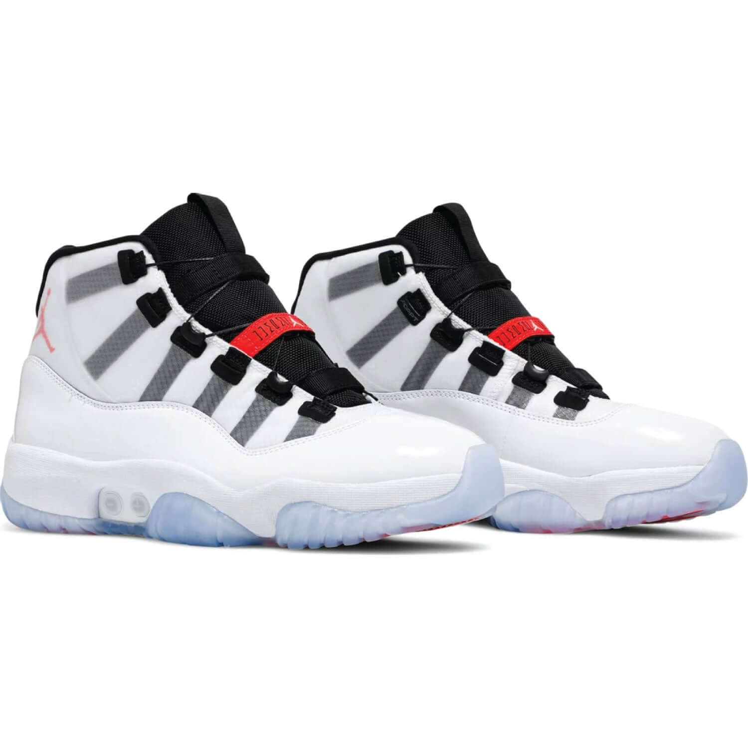 The Air Jordan 11 Adapt ‘White’ commemorates the iconic silhouette’s quarter-century milestone by updating the shoe with Nike’s groundbreaking power lacing technology. The design DNA of MJ’s fourth championship sneaker remain intact, highlighted by an upper that blends semi-translucent textile with a white patent leather overlay. The midsole houses luminescent Adapt buttons that control the Nike Adapt lace engine. Alternately, users can make adjustments through the Nike Adapt app, including changing the colors and flashing pattern of the buttons’ lights.