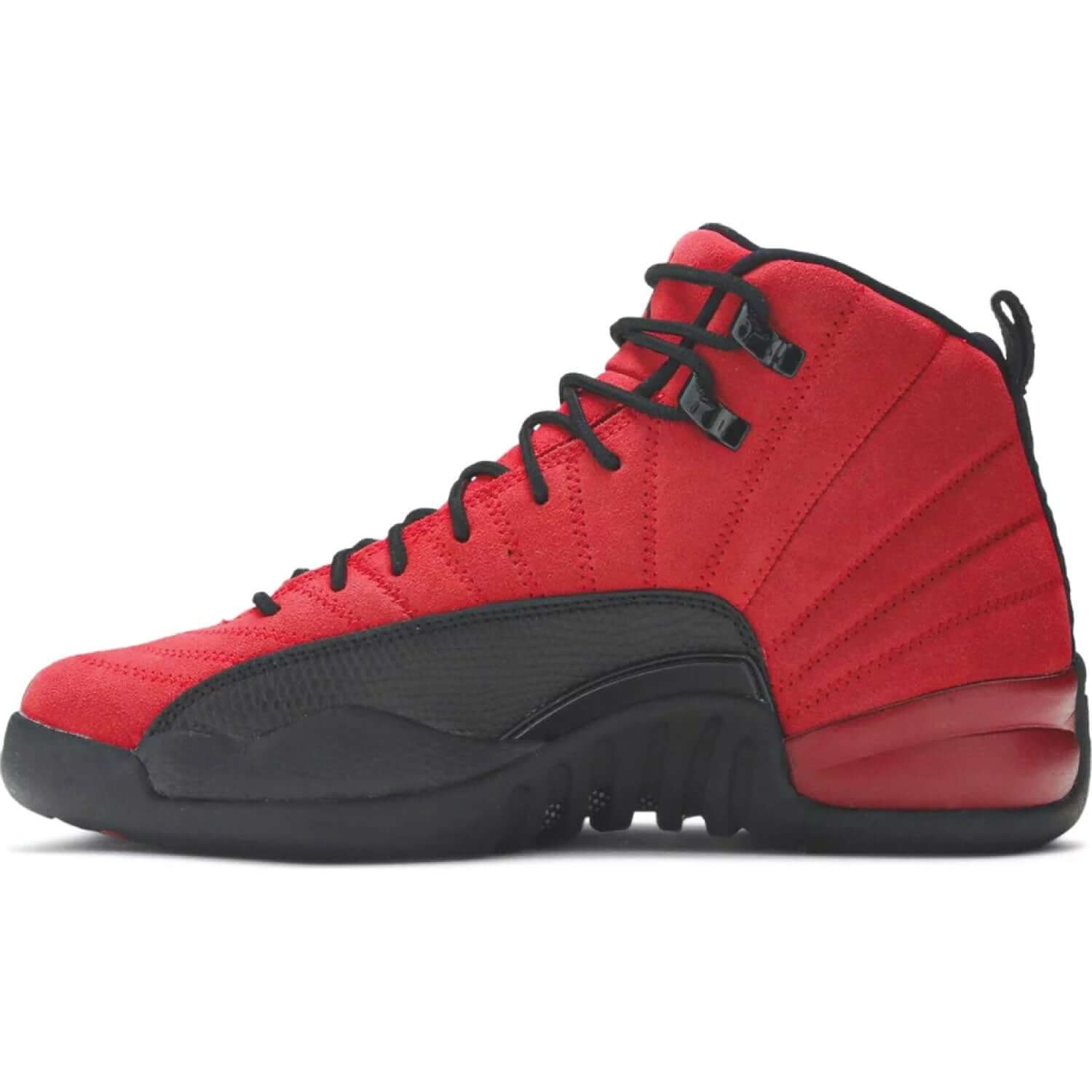 Built for big kids, the Air Jordan 12 Retro GS ‘Reverse Flu Game’ delivers a color flip of a legendary shoe steeped in Jordan lore. This pair features red suede construction throughout the upper, embellished with tonal zigzag stitching and reinforced with lizard-textured leather overlays in black. While the grade-school edition comes complete with a carbon fiber shank plate, cushioning is limited to an Air unit in the heel, versus full-length Zoom Air in the men’s version.