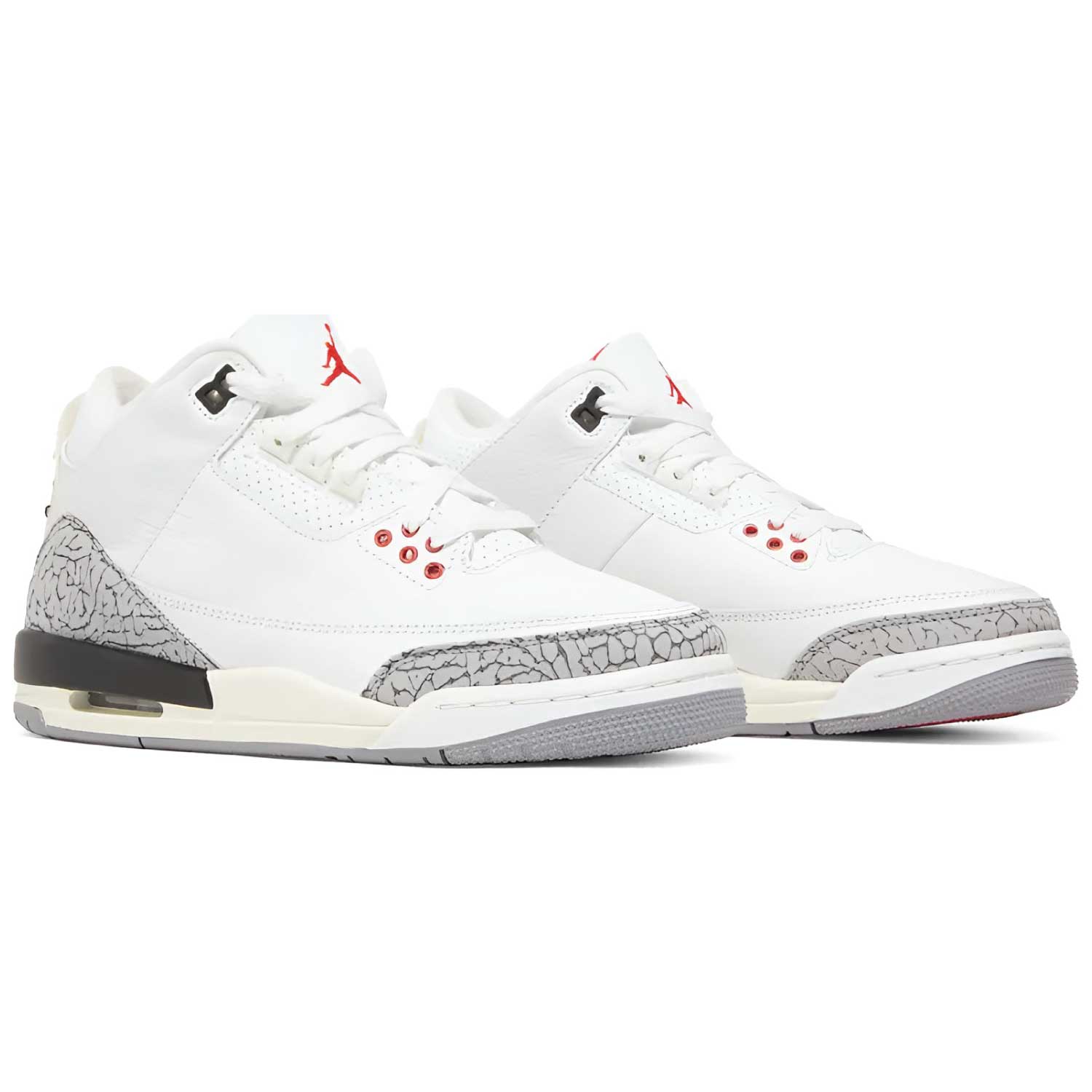 The Air Jordan 3 Retro GS 'White Cement Reimagined' brings a fresh perspective to one of the most iconic colorways in sneaker history. Designed for grade school sizes, this edition features a premium white leather upper paired with classic Cement Grey Elephant Print overlays. Aged-style midsole and heel tab details give it a vintage-inspired look, while Fire Red accents add just the right amount of bold contrast.