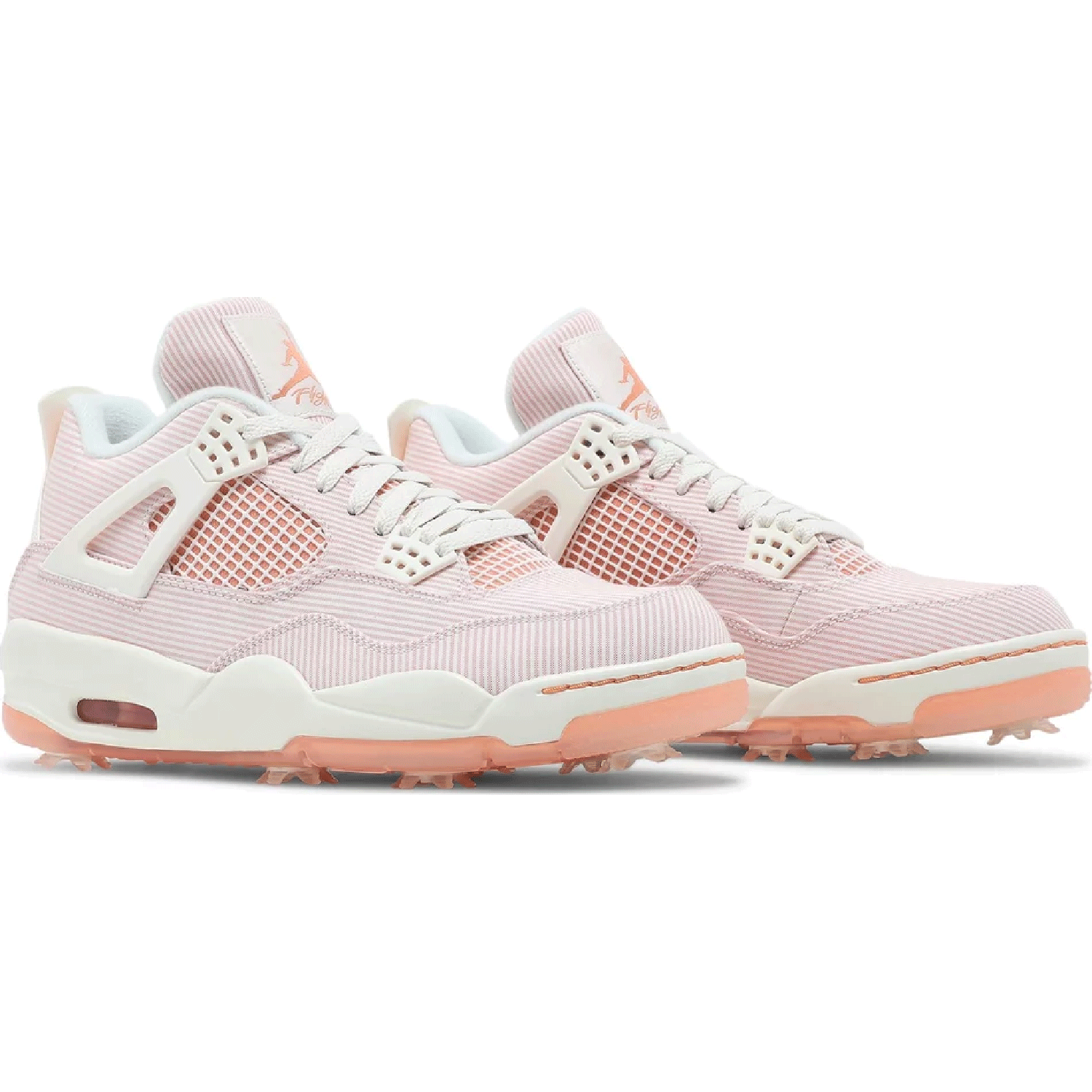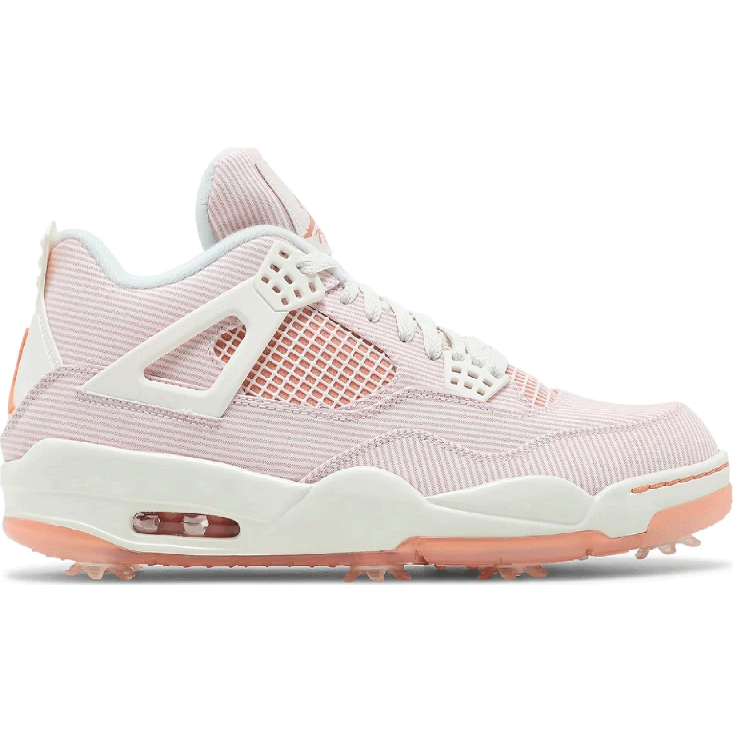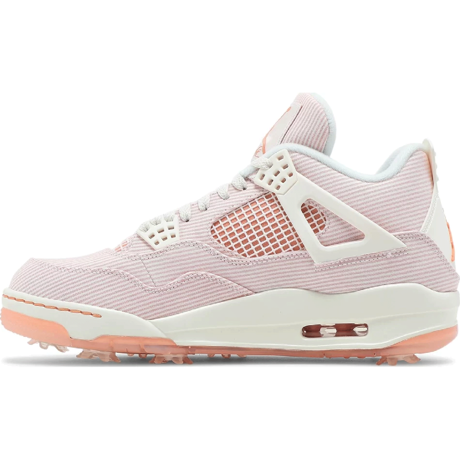Blending heritage style with elevated course-ready function, the Air Jordan 4 Golf NRG 'Seersucker' brings a refined twist to a sport classic. Inspired by the traditional summer fabric, this limited-edition features a soft pink-and-white striped seersucker upper—lightweight, breathable, and. White leather overlays, metallic accents, and a spikeless traction outsole ensure both performance and polish on the green.