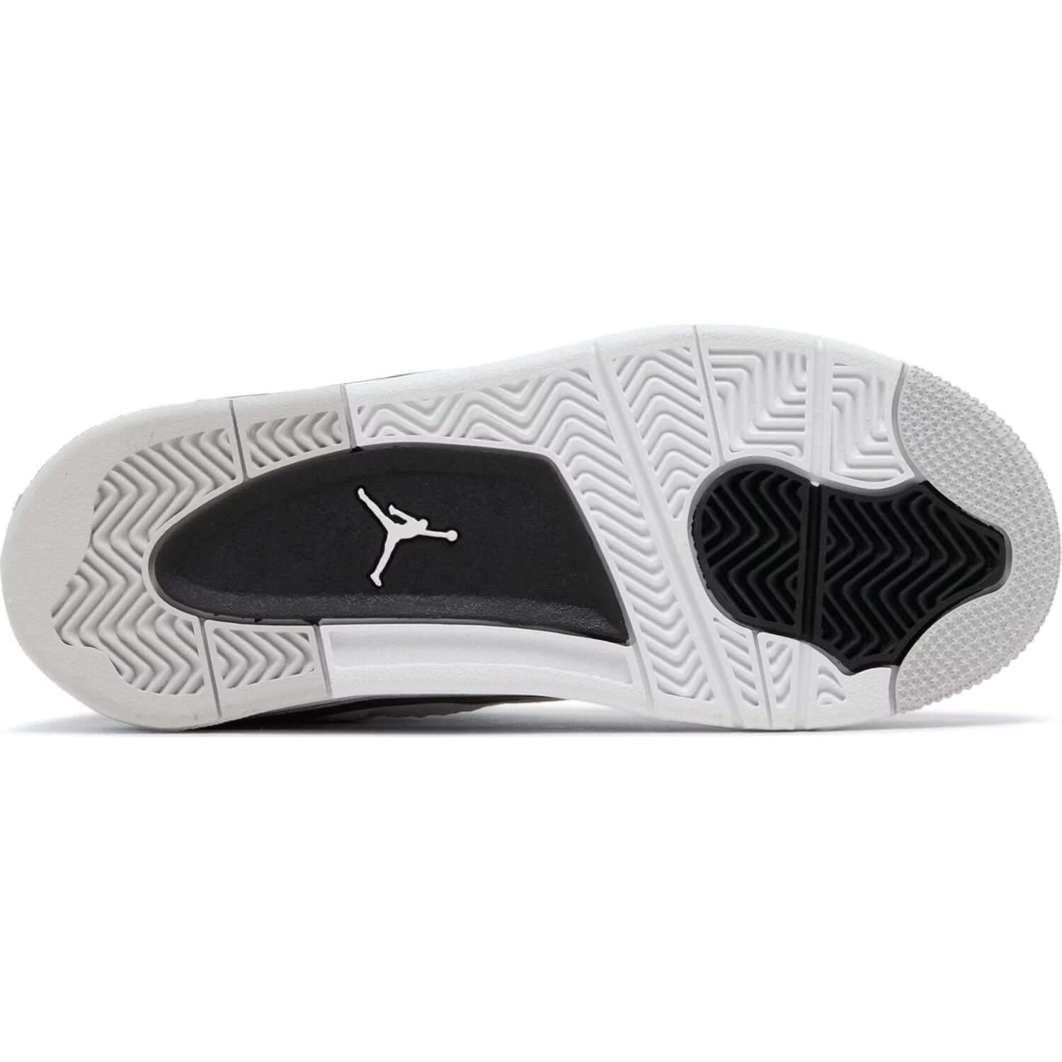 The upper features smooth white leather with soft grey overlays and contrasting black details on the eyelets, wings, and heel tab. Classic Air Jordan 4 elements like mesh paneling and supportive side wings are preserved, while the cushioned sole ensures all-day comfort for little ones.