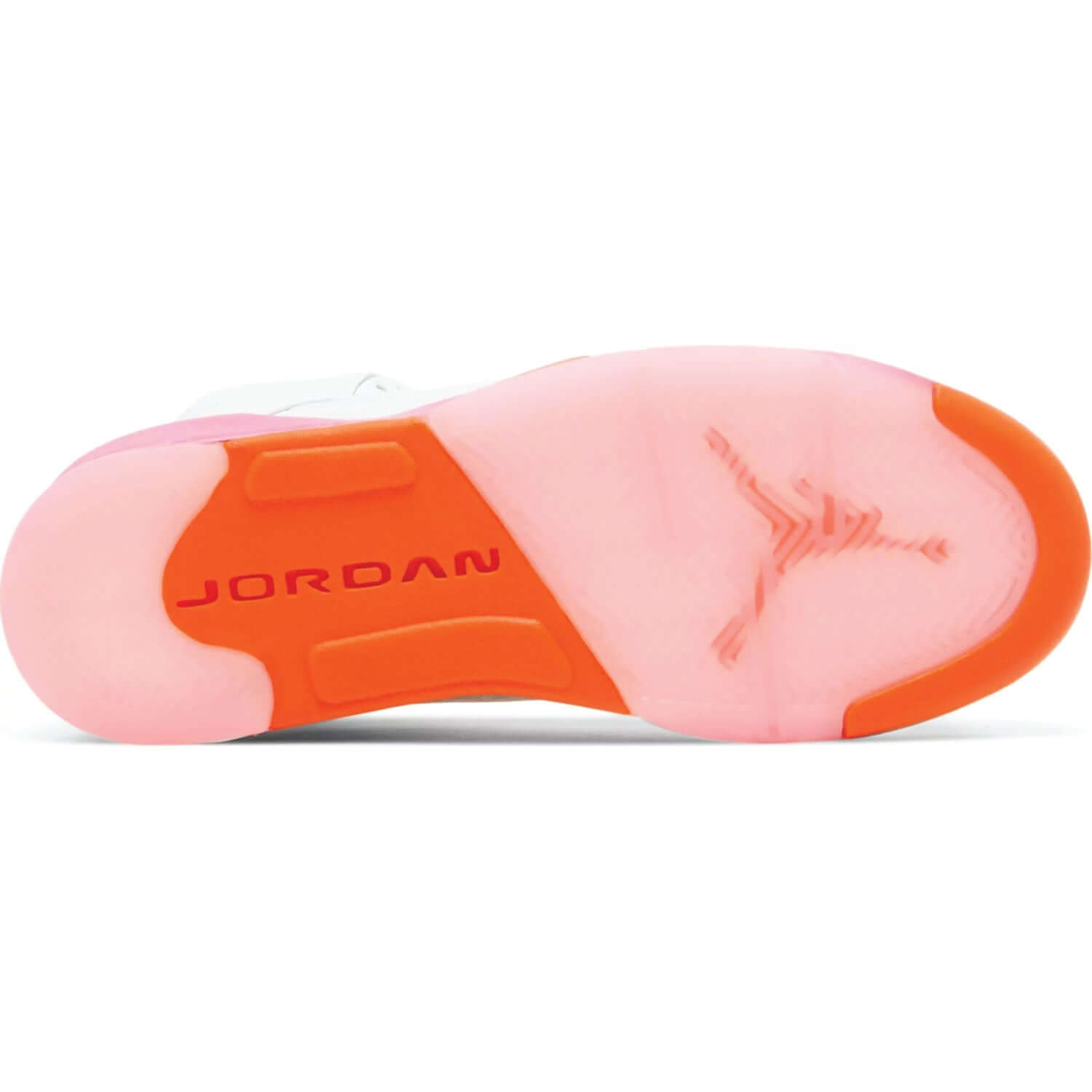 A bold blend of sporty edge and youthful energy, the Air Jordan 5 Retro GS ‘Pinksicle’ is designed to stand out. This grade school edition features a crisp white leather upper accented by vibrant pink details and hits of safety orange, delivering a playful yet confident look. Signature AJ5 design elements—like the reflective tongue, lace lock, and jagged midsole—stay true to the original, while the icy translucent outsole adds a fresh finish.