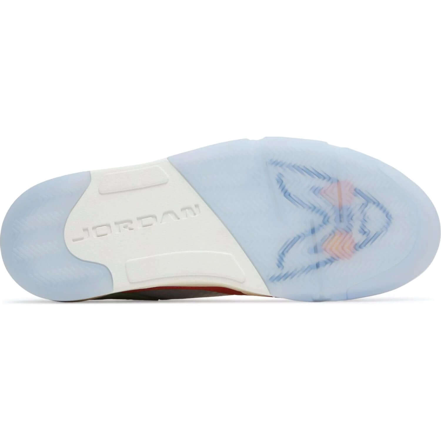 Iconic AJ5 features: reflective tongue, lace toggle, shark tooth midsole