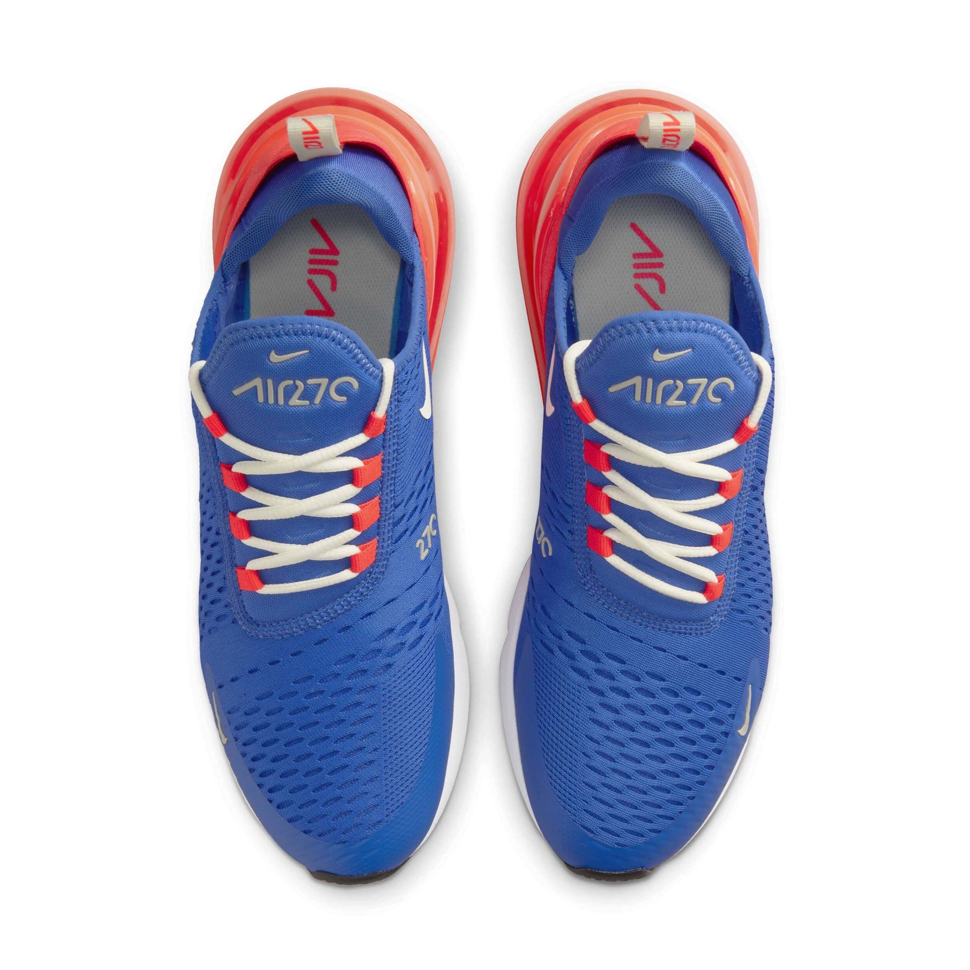 The Air Max 270 Flyknit 'Blue Crimson' is imbued with forward-thinking innovation for a street lifestyle. Introduced in April 2019, this 'Blue Crimson' edition mimics movement with a radiating wave pattern molded into the mesh upper. Tonal laces, synthetic frames and a pull tab amplify the look. A Swoosh-branded mudguard and a bulging, translucent Air unit deliver a sleek, cushy base.