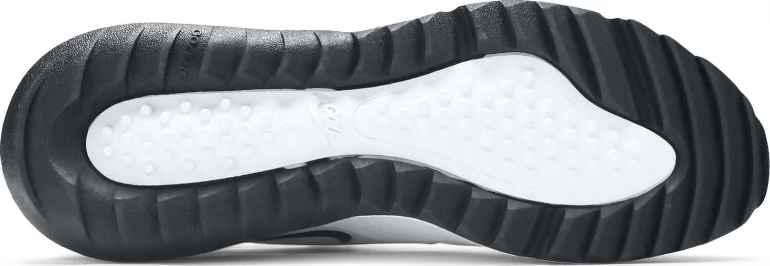 The Air Max 270 Golf 'White Black' is imbued with forward-thinking innovation for a street lifestyle. Introduced in April 2019, this 'White Black' edition mimics movement with a radiating wave pattern molded into the mesh upper. Tonal laces, synthetic frames and a pull tab amplify the look. A Swoosh-branded mudguard and a bulging, translucent Air unit deliver a sleek, cushy base.