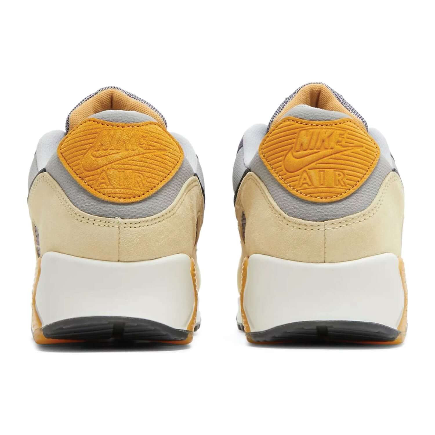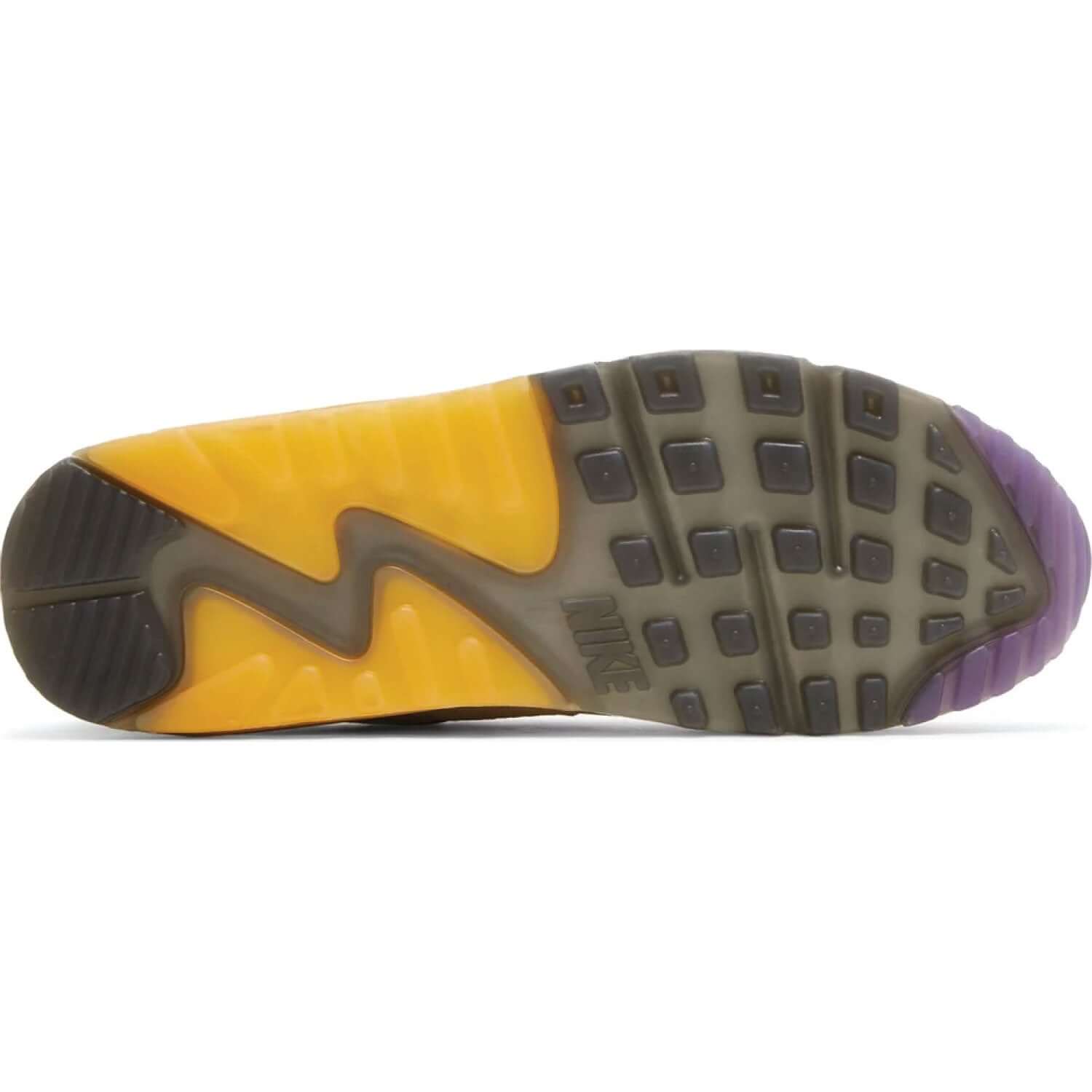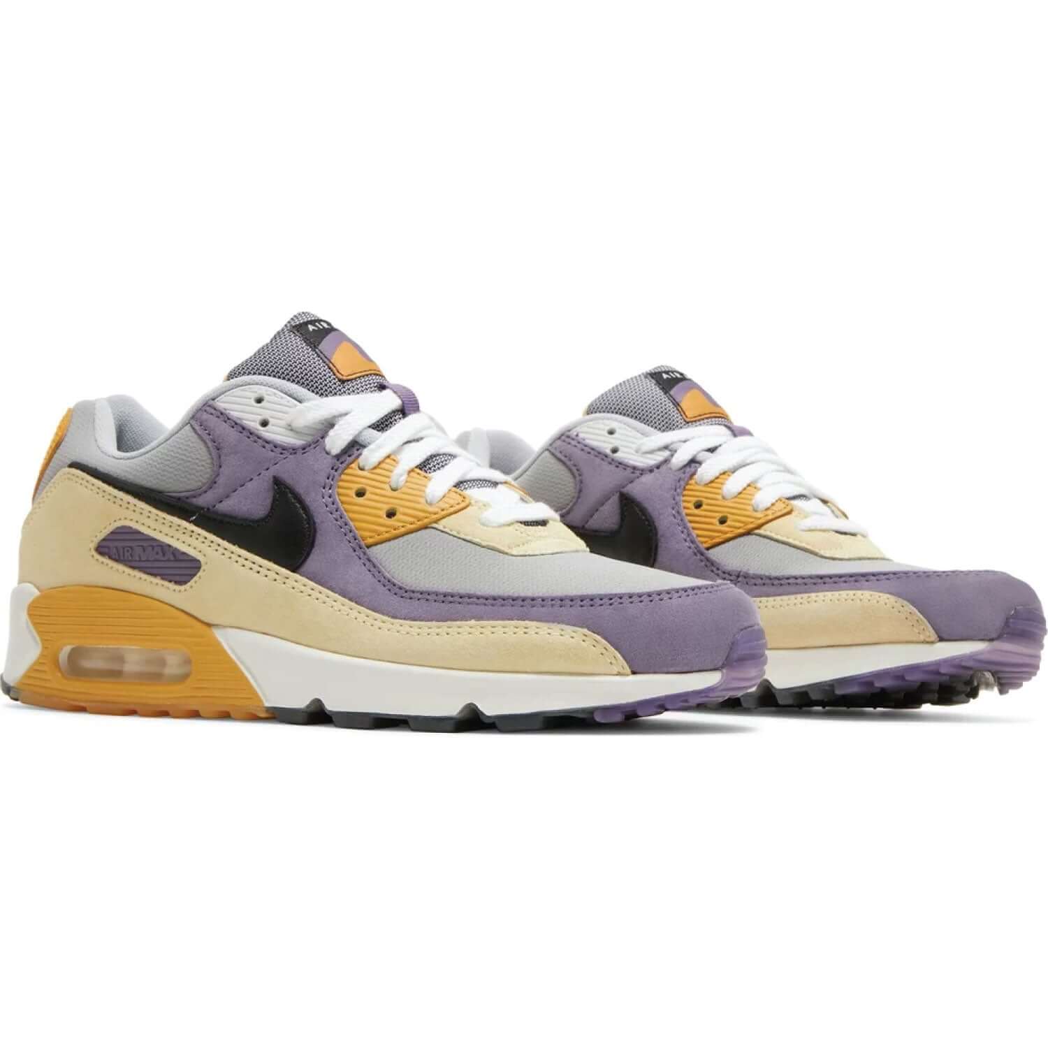 The Air Max 90 NRG ‘Lemon Drop’ updates the retro runner with contrasting hues and an elevated build. The upper is crafted from grey ballistic mesh with pigskin suede overlays in a soft violet finish. A cropped black leather Swoosh sits atop a yellow suede mudguard, while golden tan accents land on molded eyelets and a branded heel patch. Lightweight cushioning arrives via a foam midsole with a visible Air-sole unit nestled in the heel. Underfoot, the multicolored translucent rubber outsole features a traditional waffle tread and forefoot flex grooves.