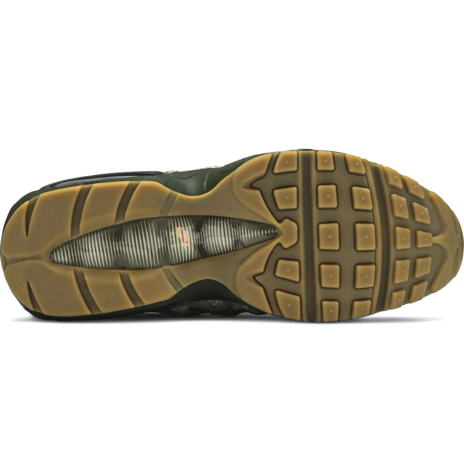 To balance out the prominent ‘Camo’ design on the quarter panel, the Air Max 95 Essential 'Camo' sneaker utilizes a ‘Sunset Tint’ colorway on the eyelets, at the base of the Air Max unit and on the Swoosh. The three-layered leather ‘Camo’ panels disappear at the toe box, which has a neutral tone that runs up the tongue and into the lining. The outsole of this July 19, 2018 release is made with gum rubber, which is spot-on for the aesthetic of the shoe.