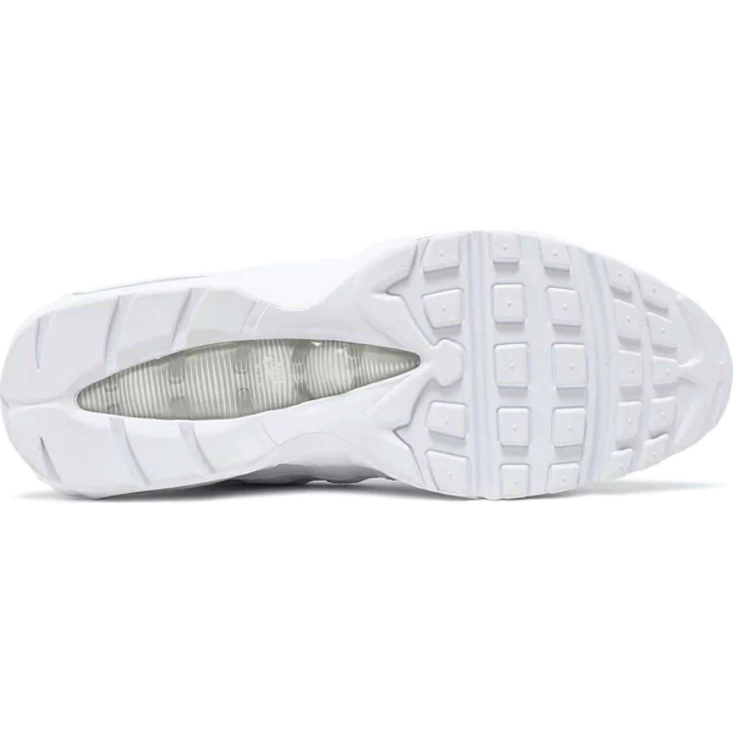 The Air Max 95 'Triple White' is a timeless classic that continues to captivate sneaker enthusiasts with its clean, minimalist design. This iconic silhouette, originally designed by Sergio Lozano, pays homage to the human anatomy with its unique structure and aesthetics. The 'Triple White' colorway brings a fresh and versatile look, perfect for any outfit or occasion.