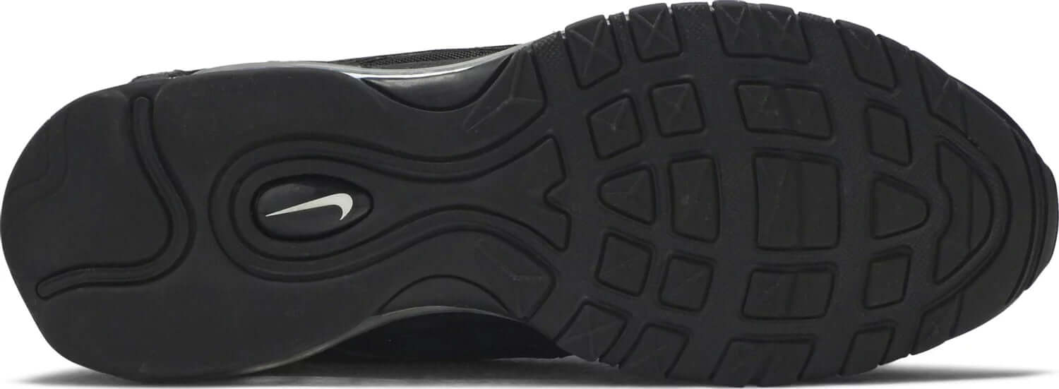 The Air Max 97 'Triple Black' is imbued with forward-thinking innovation for a street lifestyle. Introduced in April 2019, this 'Triple Black' edition mimics movement with a radiating wave pattern molded into the mesh upper. Tonal laces, synthetic frames and a pull tab amplify the look. A Swoosh-branded mudguard and a bulging, translucent Air unit deliver a sleek, cushy base.
