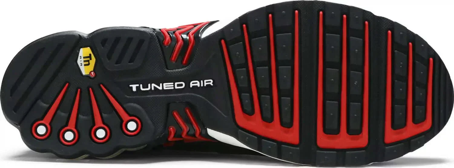 The Nike Air Max Plus 3 'Black Red' is imbued with forward-thinking innovation for a street lifestyle. Introduced in April 2019, this 'Black Red' edition mimics movement with a radiating wave pattern molded into the mesh upper. Tonal laces, synthetic frames and a pull tab amplify the look. A Swoosh-branded mudguard and a bulging, translucent Air unit deliver a sleek, cushy base.