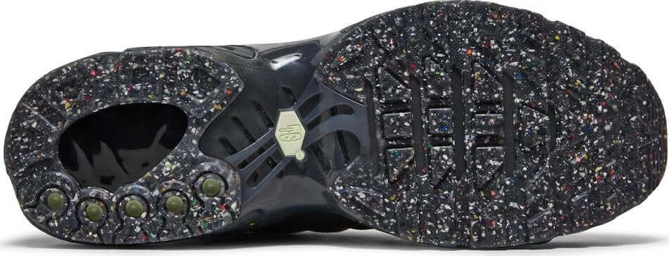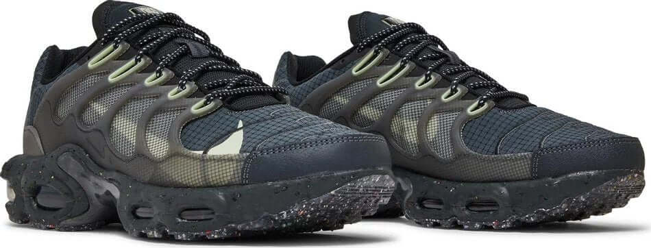The Air Max Terrascape Plus 'Black Barely Volt' is imbued with forward-thinking innovation for a street lifestyle. Introduced in April 2019, this 'Black Barely Volt' edition mimics movement with a radiating wave pattern molded into the mesh upper. Tonal laces, synthetic frames and a pull tab amplify the look. A Swoosh-branded mudguard and a bulging, translucent Air unit deliver a sleek, cushy base.