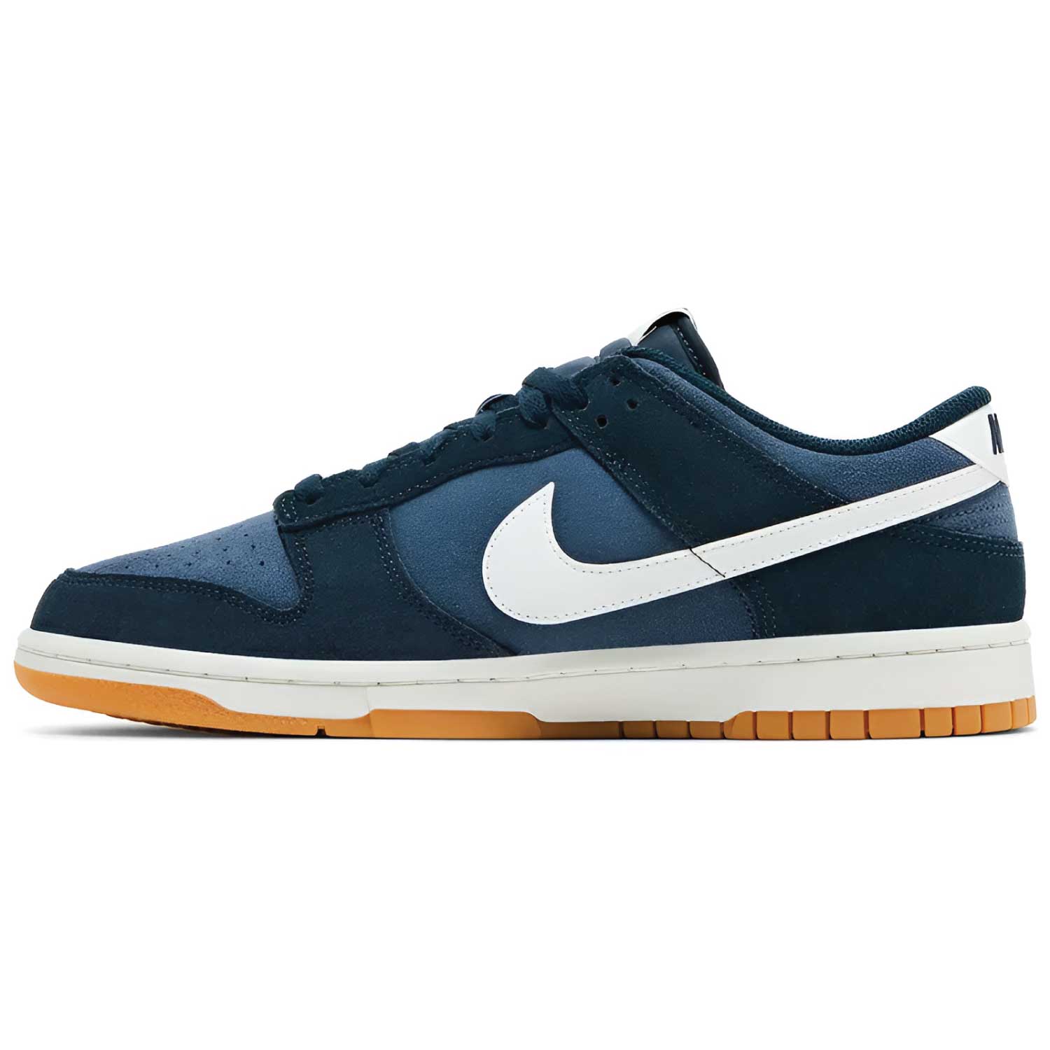 The Dunk Low SE 'Armory Navy Gum' combines a deep navy leather upper with matching overlays and a classic gum sole, offering a bold yet versatile look. Designed for all-day comfort, this low-top sneaker features durable compounds, a clean silhouette, and a street-ready edge perfect for both casual wear and skate style.