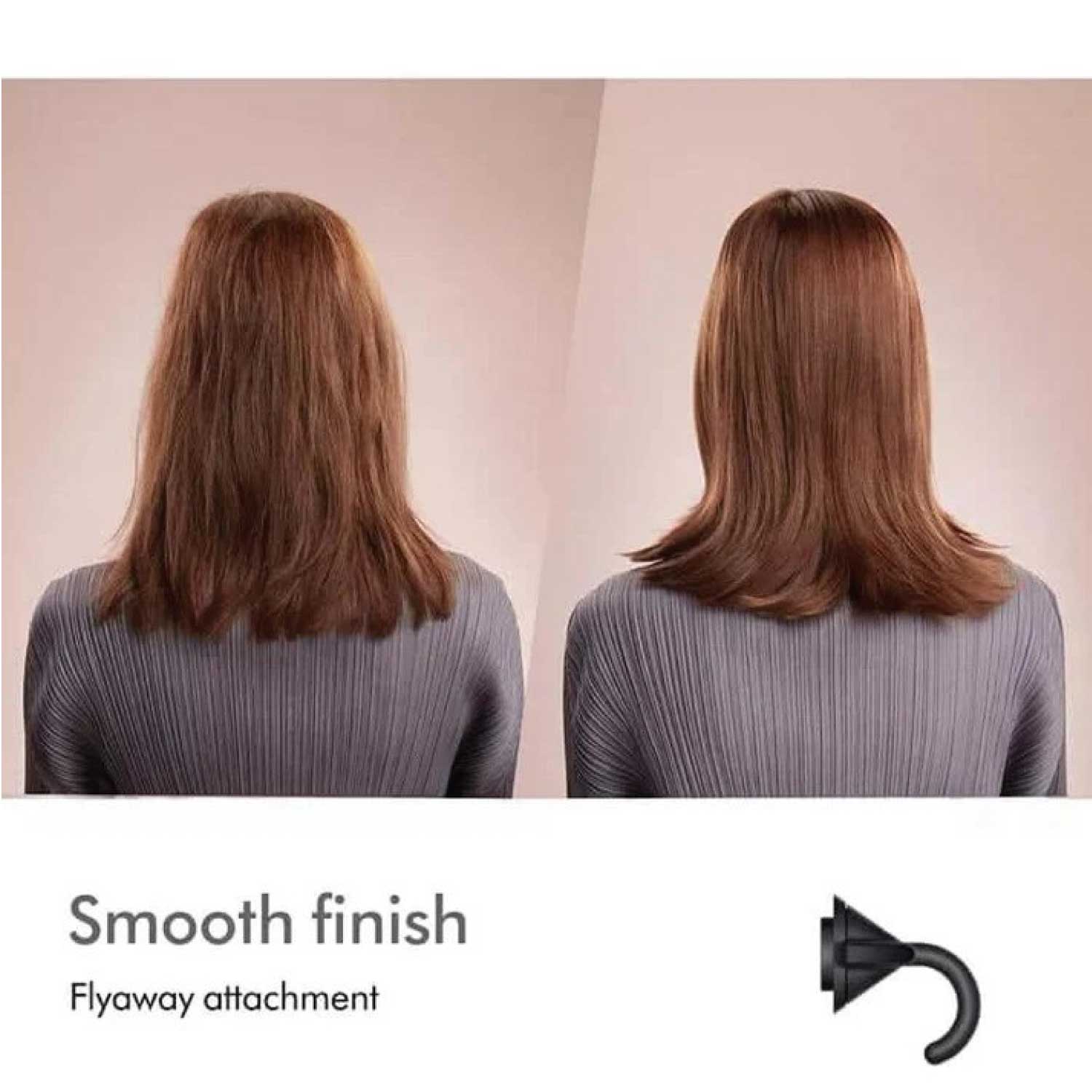 Includes multiple heat-resistant magnetic attachments, such as a styling concentrator, smoothing nozzle, diffuser, and flyaway attachment for various hair types and styles.