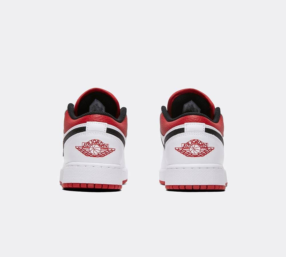 The Jordan 1 Low White University Red Black combines a clean white leather upper with contrasting red and black overlays, creating a vibrant, athletic-inspired design. With its iconic low-top silhouette, this sneaker offers a versatile and stylish option for casual wear, featuring classic Jordan branding for a touch of heritage