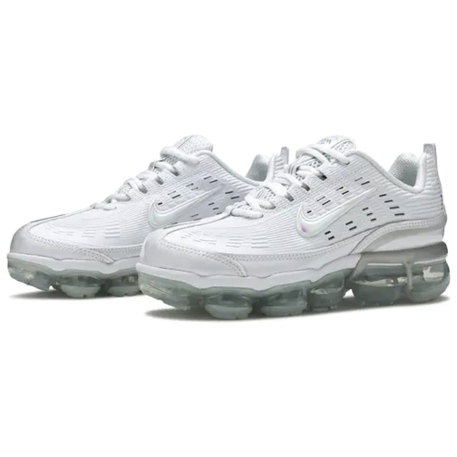 The Wmns Air VaporMax 360 'Triple White' combines futuristic design with all-day comfort. Featuring a sleek, seamless upper in pristine white, it delivers a clean, modern aesthetic. The full-length VaporMax cushioning ensures lightweight responsiveness with every step, while the 360-degree reflective detailing adds subtle flair. Perfect for running or elevating your everyday style, this pair is the ideal fusion of innovation and timeless elegance.