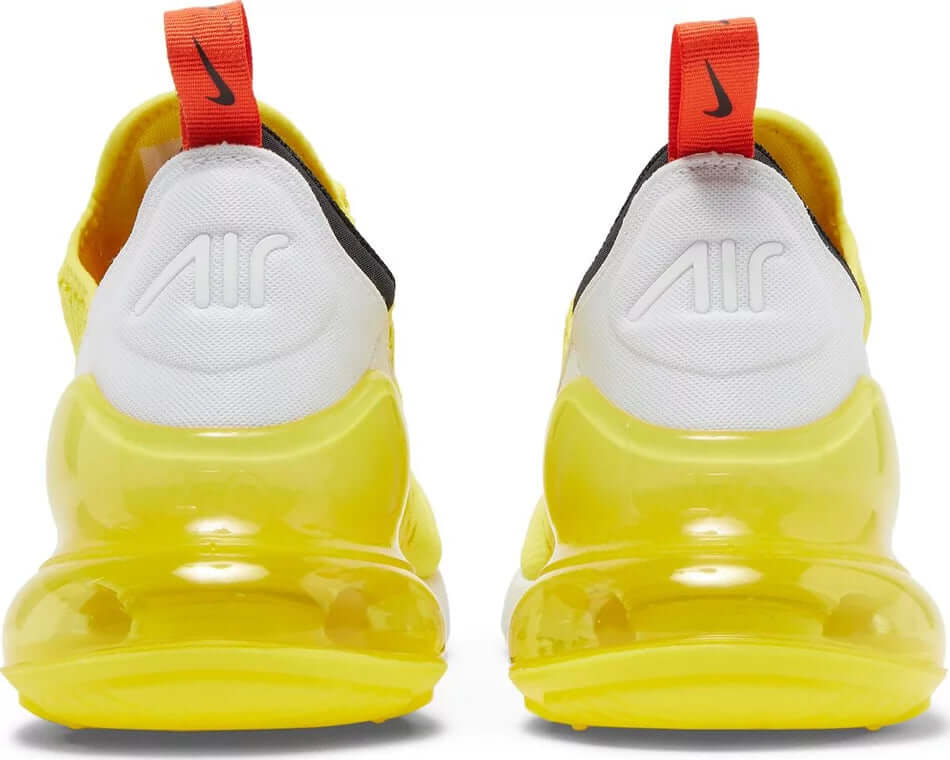 The Wmns Air Max 270 'Yellow Strike' is imbued with forward-thinking innovation for a street lifestyle. Introduced in April 2019, this 'Yellow Strike' edition mimics movement with a radiating wave pattern molded into the mesh upper. Tonal laces, synthetic frames and a pull tab amplify the look. A Swoosh-branded mudguard and a bulging, translucent Air unit deliver a sleek, cushy base.