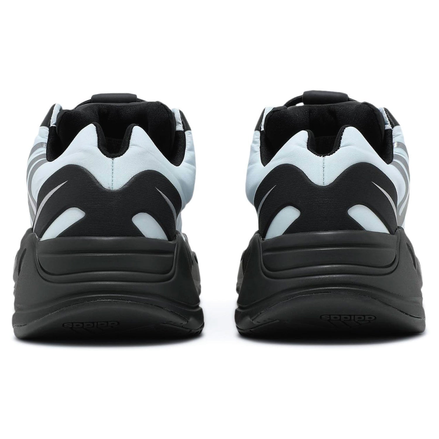 The Yeezy Boost 700 MNVN ‘Blue Tint’ applies an especially vibrant hue to the lightweight polyester upper, secured with no-tie bungee laces and enlivened with reflective accents, including oversized 700 branding on the lateral side panel. Contrasting black hits make their way to the collar lining, tongue, and reinforced no-sew overlays at the toe and heel. The seamless build rides on a sculpted black polyurethane midsole, enhanced with full-length drop-in Boost cushioning.A fresh spin on the silhouette, the "Blue Tint" is definitely a Yeezy for summer. Featuring light blue nylon, the one piece comes complete with a large "700" on the upper. Switching up the traditional leather and suede ensures a sleek look for this Yeezy 700. Black details can be seen on the tongue, laces, toe, and heel as well as the Black Boost midsole unit.