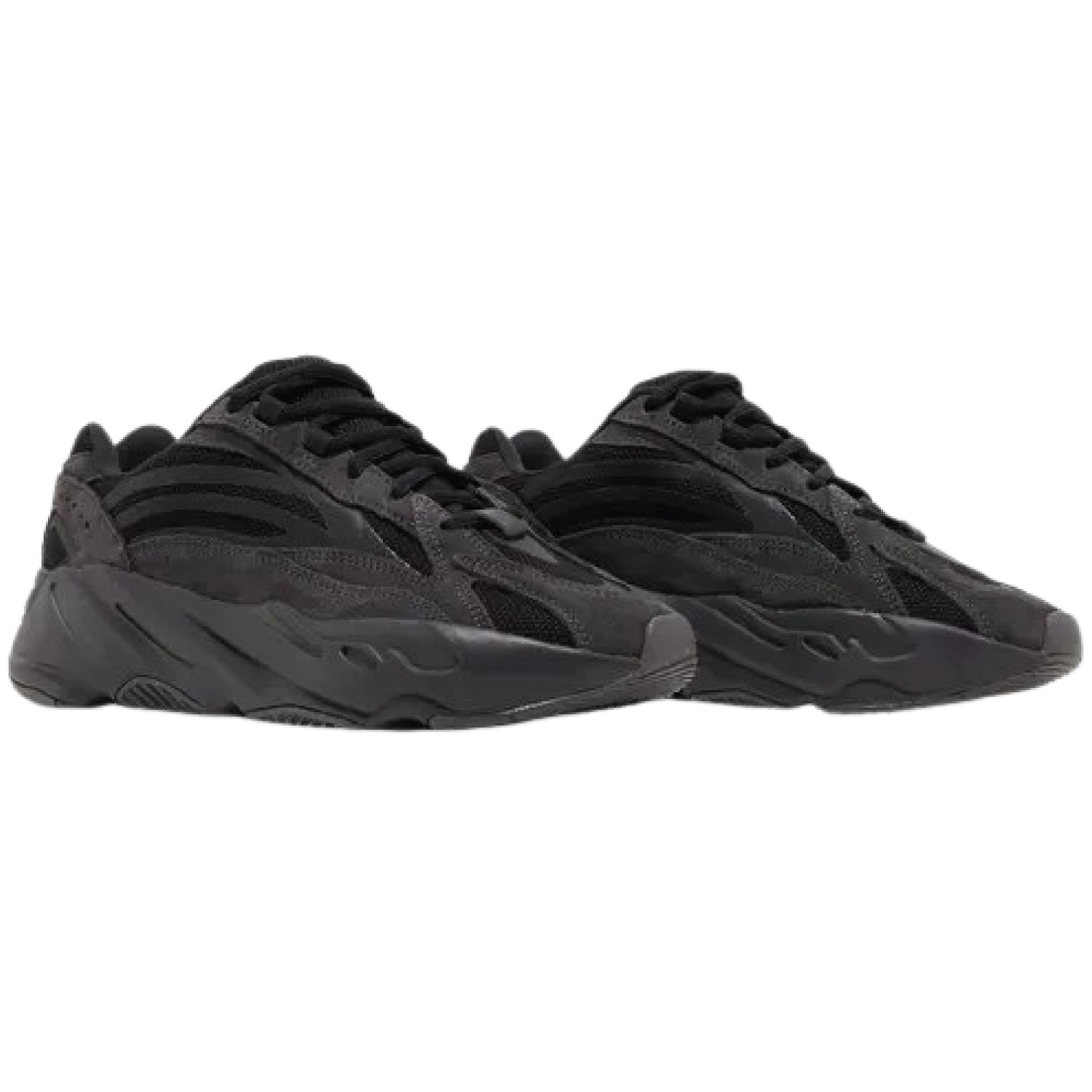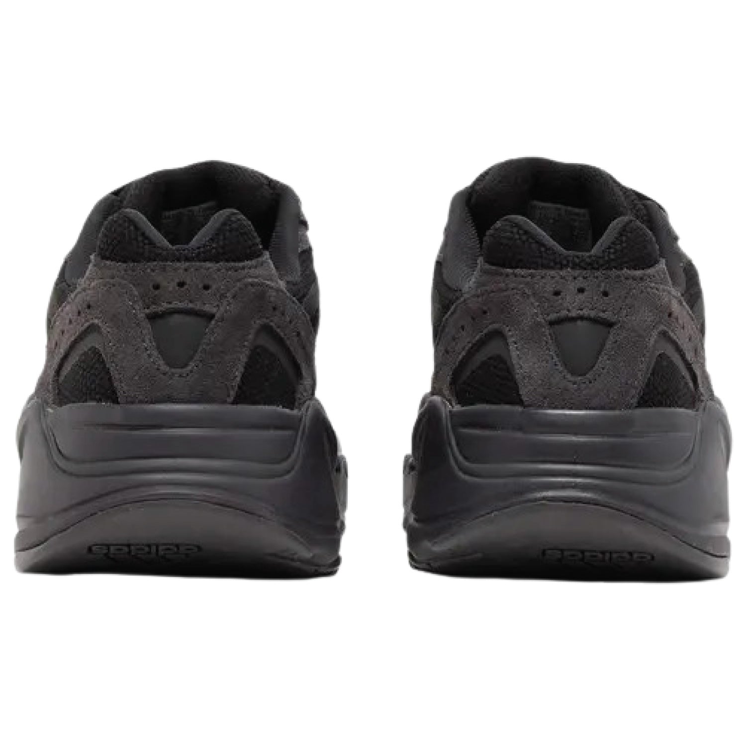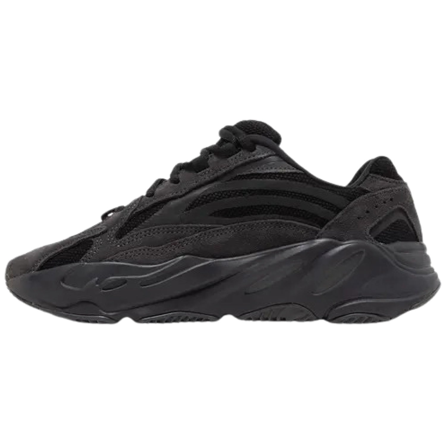 The Yeezy Boost 700 V2 'Vanta' delivers a bold, all-black look with a stealthy edge. Built with a layered mix of mesh, suede, and leather, the upper offers both texture and support, while reflective accents add subtle shine in low light. The sculpted Boost midsole provides responsive comfort, making it ideal for all-day wear. A durable black rubber outsole completes the design, offering reliable traction and a streamlined finish. The 'Vanta' stands out for its dark, minimalist aesthetic and rugged Yeezy appeal.